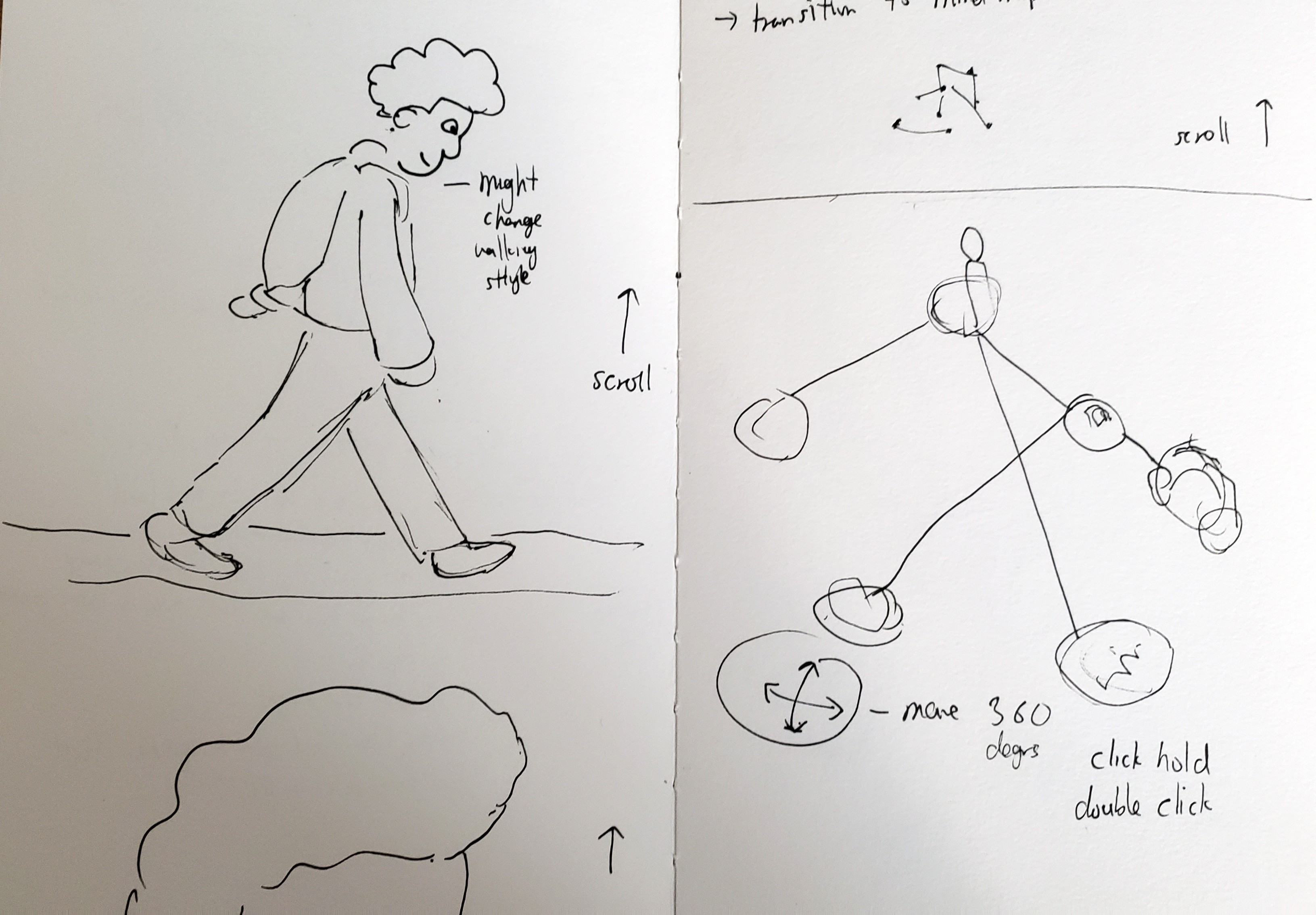 In the pictures below, I made these assets like headphones, sandwich heart and globe represent, my love for music, food, people I care about and my experiences all over the world. The rotation represents how these things are constantly on my mind. I want to add a click feature where each item takes you to that world. I also want to add a random thoughts feature showing how I can sometimes get random ideas and how I remember them.