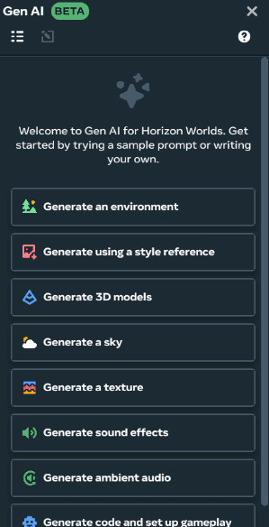 For world generation, I have also been exploring Generative AI tools integrated in Horizon Worlds. I use prompts that describe a setting, time, or atmosphere to create environments I can later customize through design and code. For instance, I made a quiet camp at night entirely out of the Gen AI feature in the Horizon worlds. I will soon introduce autonomous AI-driven NPCs, each reflecting different personalities or thoughts within my mind. This combination of AI and interactivity allows the world to feel alive and personal, showing the inner complexity that inspired the project in the first place.