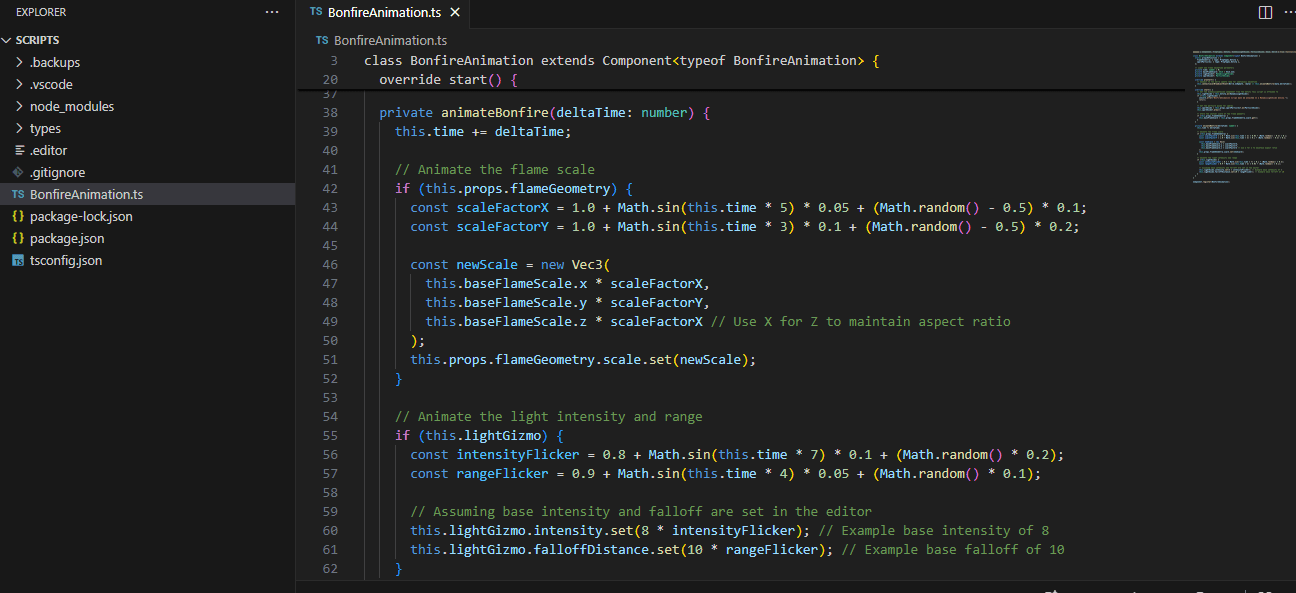Code Snippet for the Bon Fire Animation